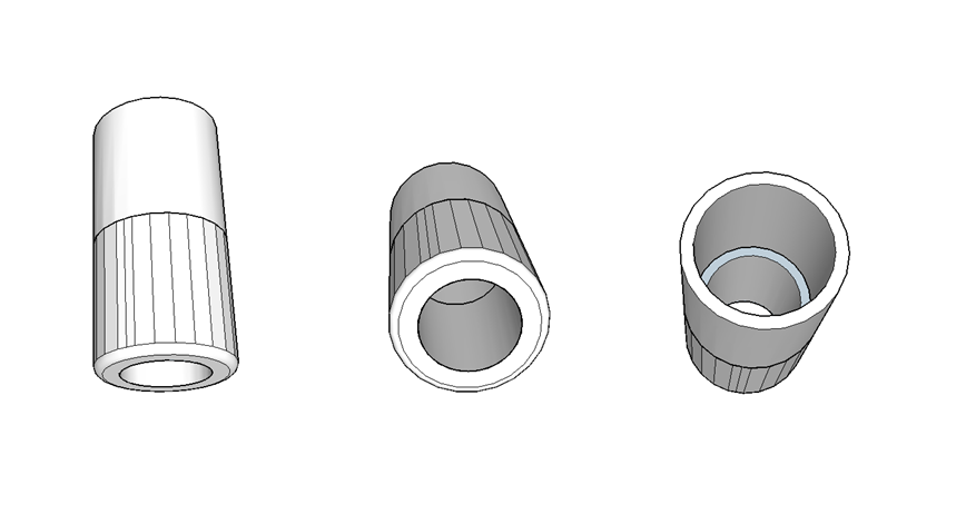 Še nekaj o 3D modelu: polovica ustnika ima konusno odprtino, tako da se odprtina počasi veča od mesta kjer so usta do polovice ustnika – mesta kjer doseže notranjo širino cevi. Druga polovica, ki se natakne na cev ima konstantno odprtino.